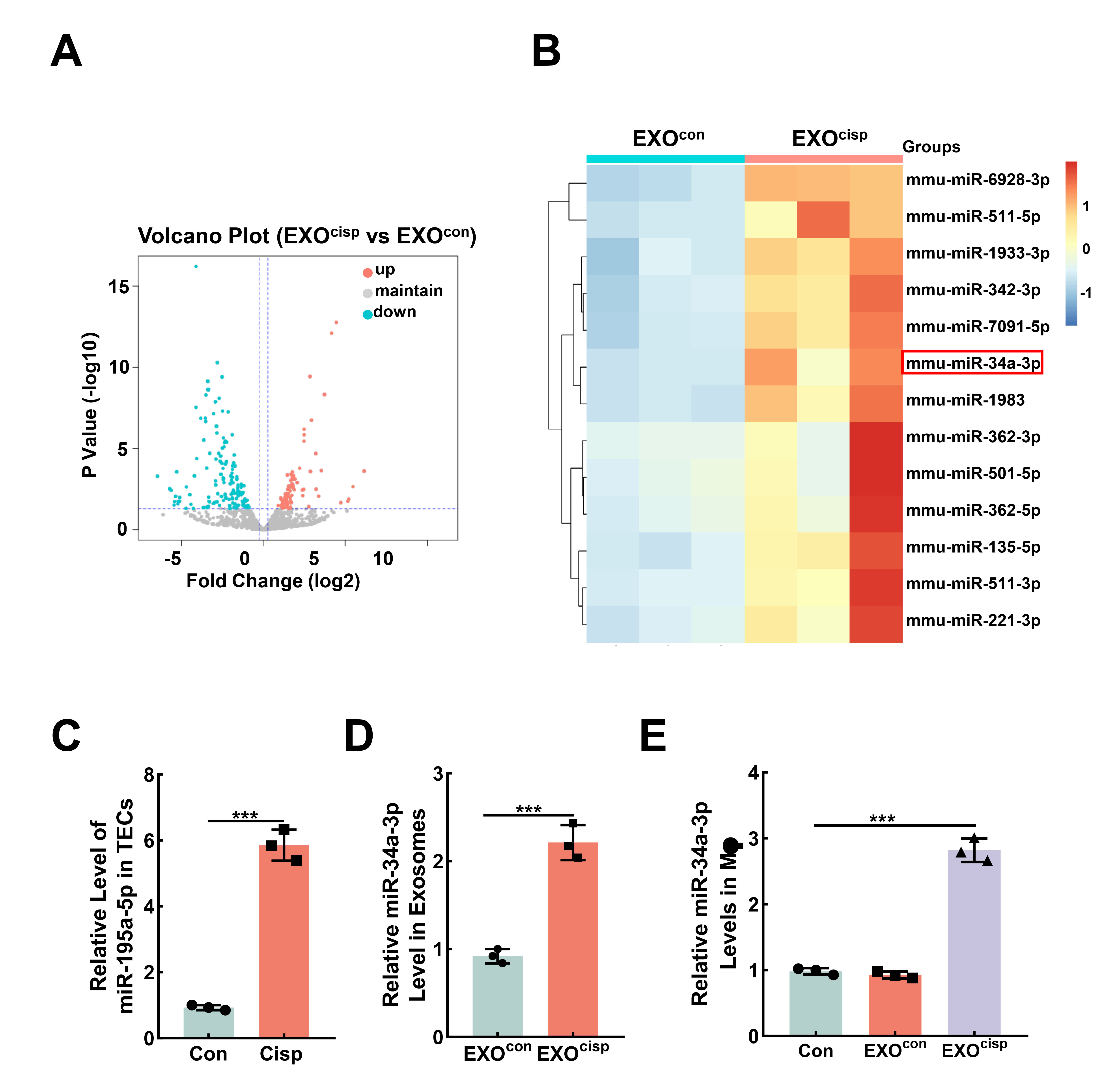 Methods: Firstly, exosomes were isolated from TECs incubated with cisplatin (EXOcisp) or without cisplatin (EXOcon) via differential ultracentrifugation. Then, immunofluorescence, flow cytometry analysis, and molecular approaches were utilized to evaluate the cellular internalization of the exosomes by the macrophages. Mechanistically, we performed this study using a miRNA microarray to identify the differentially abundant miRNAs between EXOcon and EXOcisp.