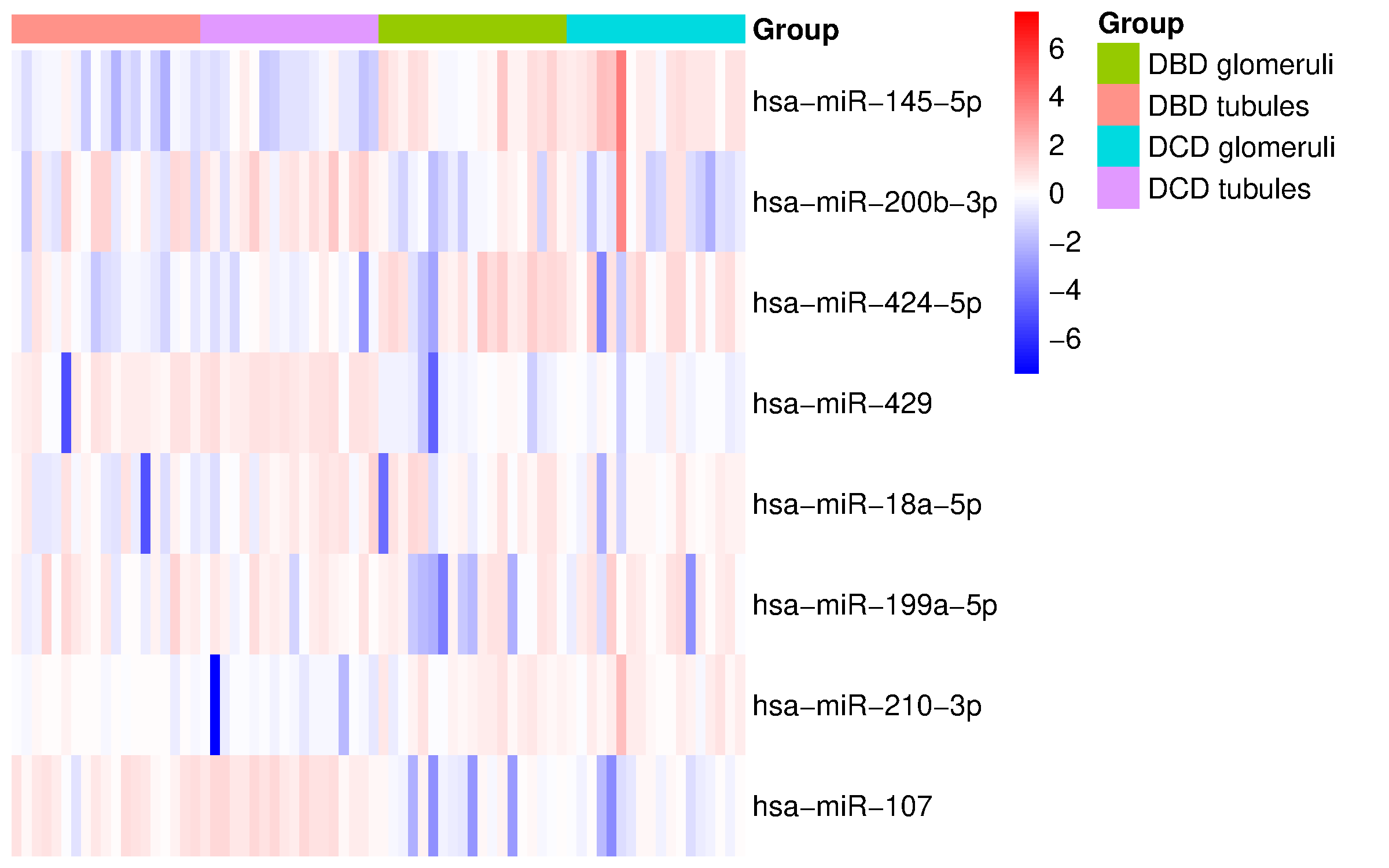 Moreover, direct comparison of DCD and DBD glomeruli revealed no miRNAs reaching statistical significance, reinforcing the concept of relative glomerular resilience and highlighting tubules as the primary site of injury in DCD grafts.