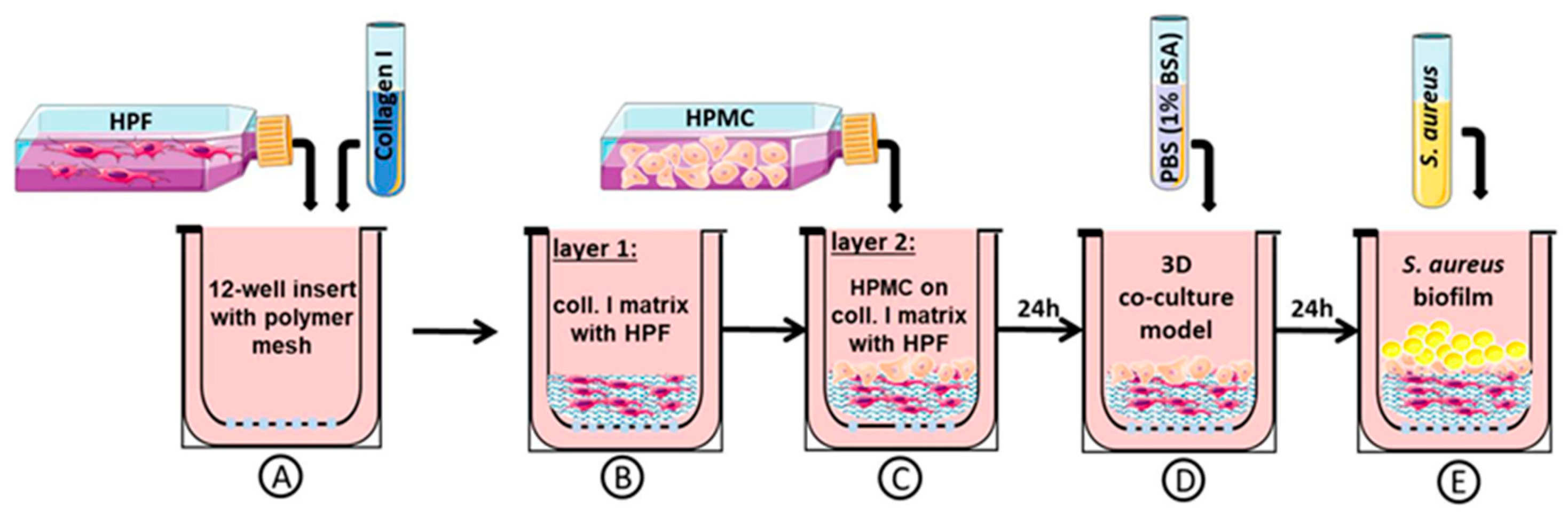 Infected samples were collected at defined time points for histological analysis and immunostaining of tight junction proteins, revealing changes comparable to in vivo empyema. Cytokine measurements confirmed host-pathogen interactions, and mesothelial cells produced VEGF at physiological levels. In contrast, sterile controls showed intact, viable cells. This novel model offers a promising in vitro tool to study biofilm formation and host responses in pleural empyema.